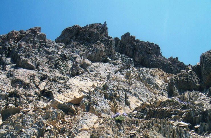 At 6 AM on Tuesday after a fitful night’s sleep, I strapped on my pack under clear skies with a climb to the zenith of Utah being the goal for the day. As I closed in on the slope leading up to Gunsight Pass, I couldn’t really tell what the trail was going to do and it looked to me like it would scramble up the slope to near the 12,000 foot mark before a slight descent I knew awaited me on the other side of the Pass. I’d done some research on the “shortcuts” and none seemed to appeal to me. I had all day to cover the 14-mile round-trip and I was less than convinced that any of the shortcuts would save any time and would certainly be more work.