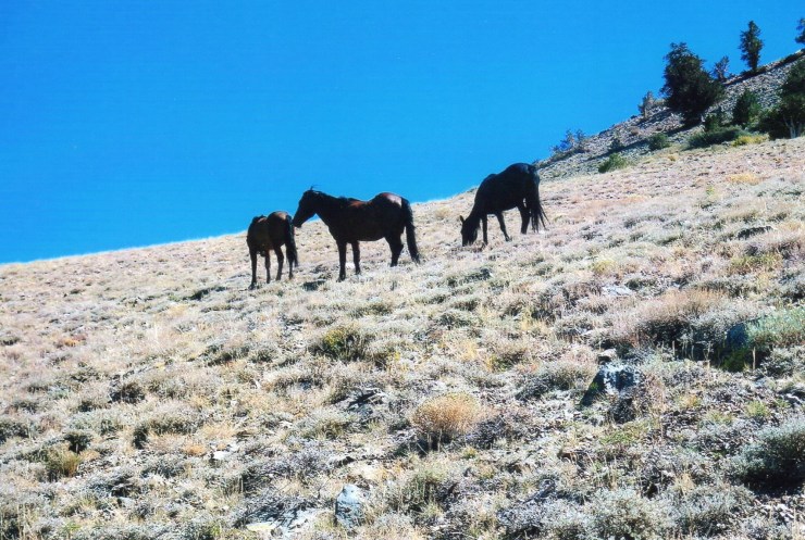 On Sunday, September 16th, Kathy and I arrived at the Queen Canyon Mine within about 15 minutes of each other during the early afternoon. I had come to get in a brief acclimatization hike and scout things out while Kathy had come to camp overnight near the trailhead. We talked about the next day’s hike and finalized our plans to get a 6 AM start. We were also pleasantly surprised to catch a glimpse of some wild horses grazing on the low slopes of Boundary.