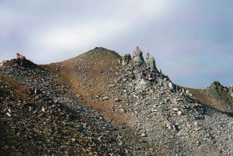 The main use path seemed to head straight for the heart of the scree for which Boundary is so well-known. I’d read and been sent private messages about this so I suggested skipping the path and heading “off-trail” straight for the ridge since the route was basically just rocky and a little sandy at this point. Kathy, however, had prior experience on Boundary and assured me that there would be a couple of feint paths that break off the main path to the left and up to the ridge. Within 10 minutes of leaving the saddle, I spotted one such path and headed up the sandy slope. This turned out to be the key to the hike. Within a half an hour, we were hiking just below the top of the ridge on an outstanding use path. We never really got off-route and steadily worked up the mountain, taking turns in the lead.