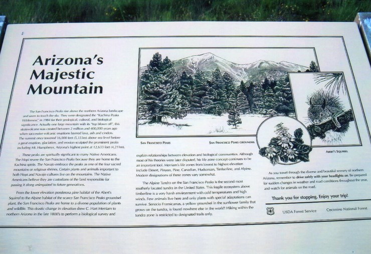 After staying a second night in Benton, California, I spent the day on Tuesday driving uneventfully from Benton to Flagstaff, Arizona, arriving in the late afternoon. Once again, I checked out the main trailhead at the Arizona Snowbowl and had time to get everything in order for another early start the next day.