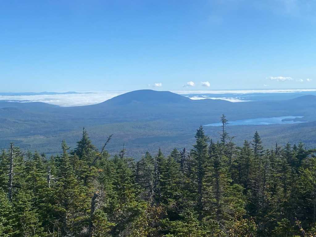 The trailhead to Big Moose is located a couple of miles down a dirt road just outside of Greenville. Of the five mountains I would be attempting, it was the easiest to find by far. I pulled into a lot large enough to easily accommodate 10-15 cars and was the first to hit the trail that day. The hike was pretty straightforward … a 4.4 mile round trip with a little over 1,800 feet in elevation gain en route to the 3,196 foot summit, which I reached a little before 9 AM. Views of Moosehead Lake (the largest lake in New England) were outstanding and I was happy to officially be in the groove of things after six months of planning and anticipation. One interesting tidbit about Big Moose Mountain is that it was apparently the site of the very first fire tower constructed atop a mountain peak in the United States. The tower was removed in 2011 after 108 years, although the footings for it remain. I’ll let the photos tell the rest of the story.