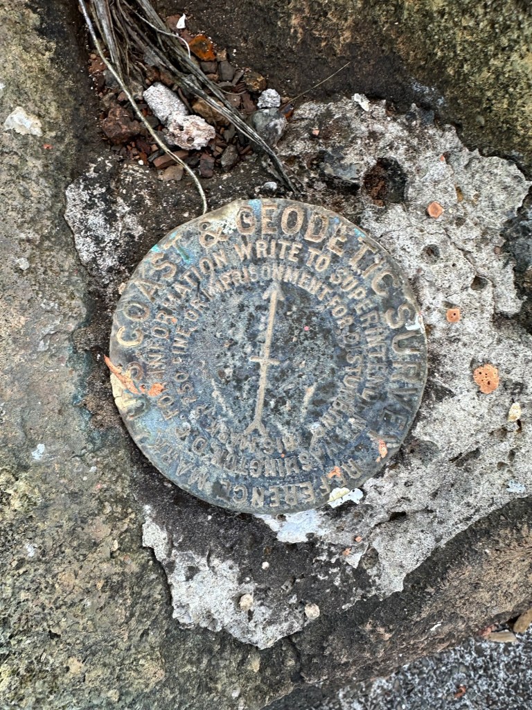 Feeling like a rogue trespassing criminal, I low-crouched my way up a small hill and made my way to the tower atop the USVI, scanning the whole time for anyone who might be around to report my renegade ascent. I had credible information there is a USGS survey marker under the tower and I easily located it, set up my selfie tripod for proof of ascent and got the hell out of there.