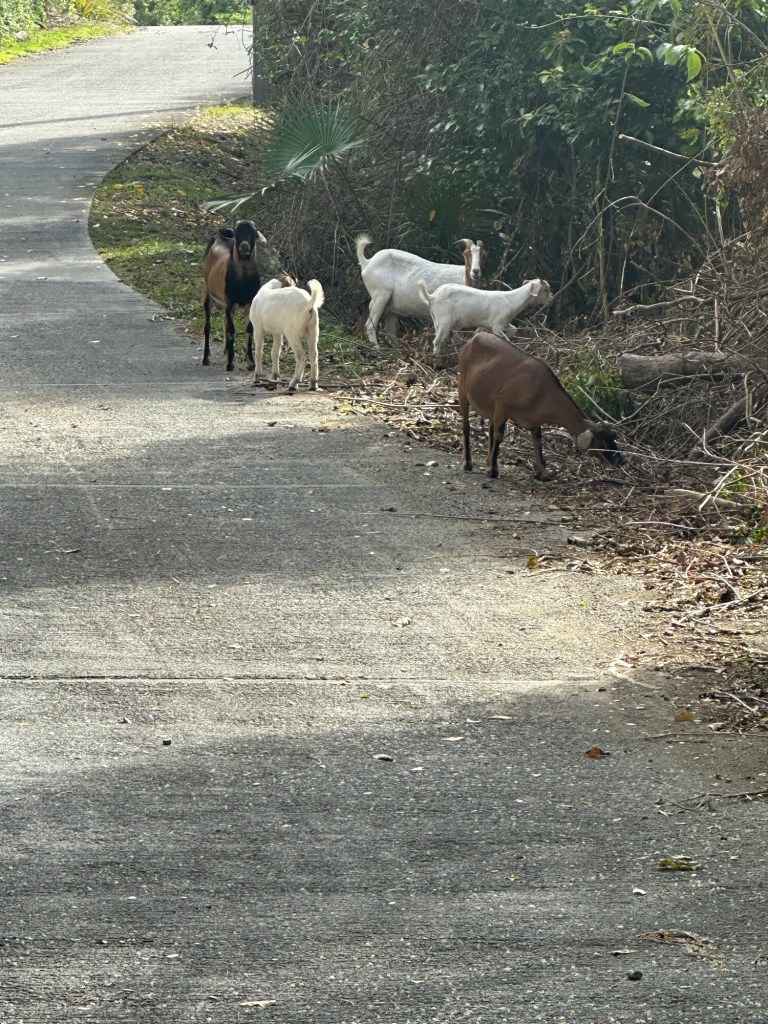 It was a perfect plan and I easily located the wide, signed and marked trail about 10 minutes after reaching the road once again. Just before branching off down the trail towards the ocean, I spotted a group of goats partially blocking the road. Cool.