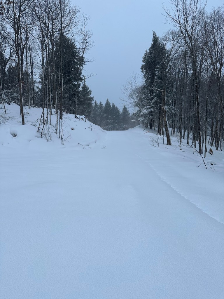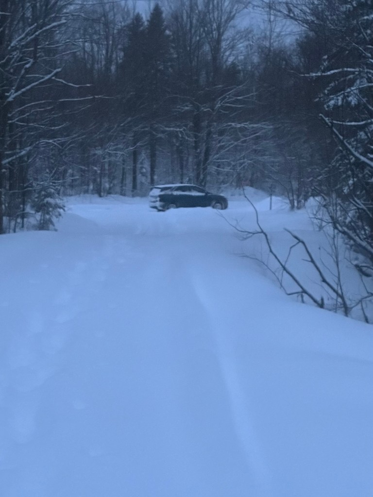 The total mileage I wanted to cover between Route 41 and where I hoped to park came in at 11 miles. I anxiously watched the number tick down on my Apple map. Silver Road narrowed to the width of a single vehicle but signs of very recent “one pass” plowing activity with snow banks on each side of the road left me feeling encouraged. I was essentially on a logging road right-of-way and logic dictated that the minimal maintenance would continue until the intersection I hoped to reach.